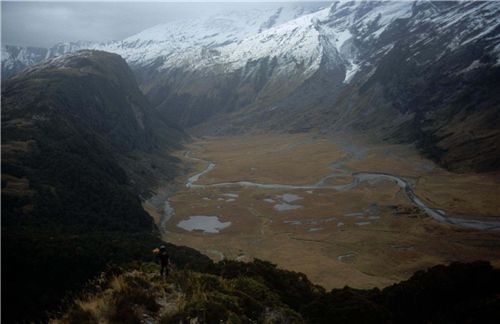 The tussock ampitheatre of Marks flat is shown in this image from the slopes of the Solution range.