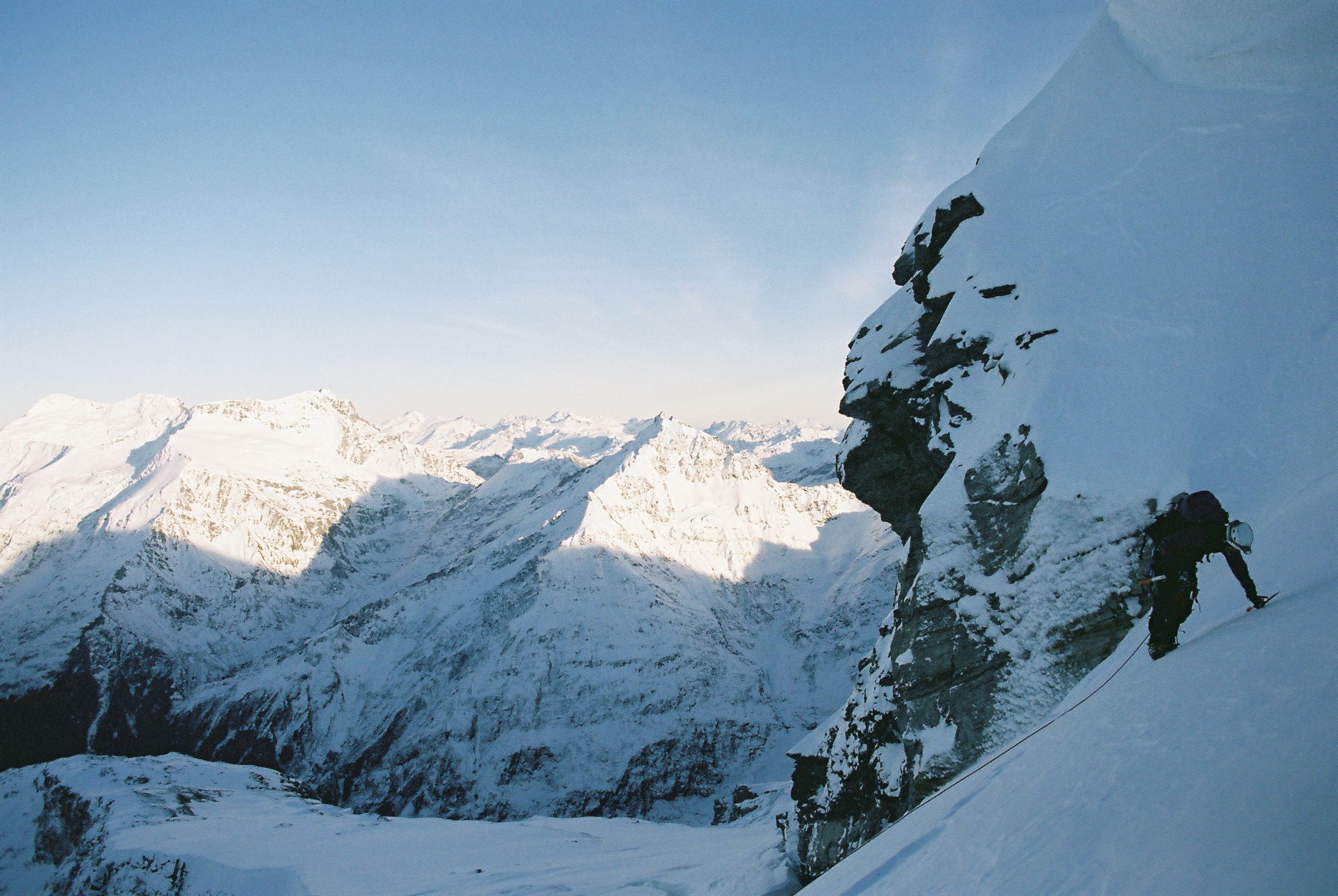 Just after climbing up ice wall on eastern side of Mt French. Note it is getting light - we were supposed to already have started the climb!