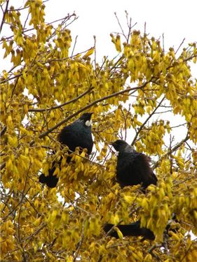 At southward car museum, there were up to ten Tui in these trees, very impressive sight, and quite loud!!