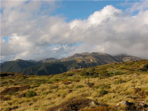 Dropping the ridge off the backside of Kaweka peak in the afternoon light.