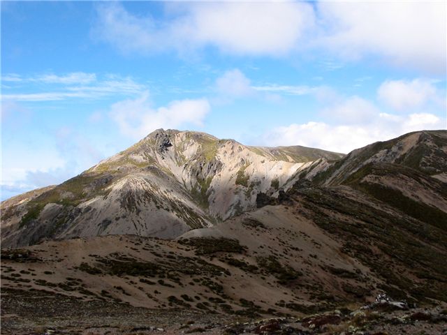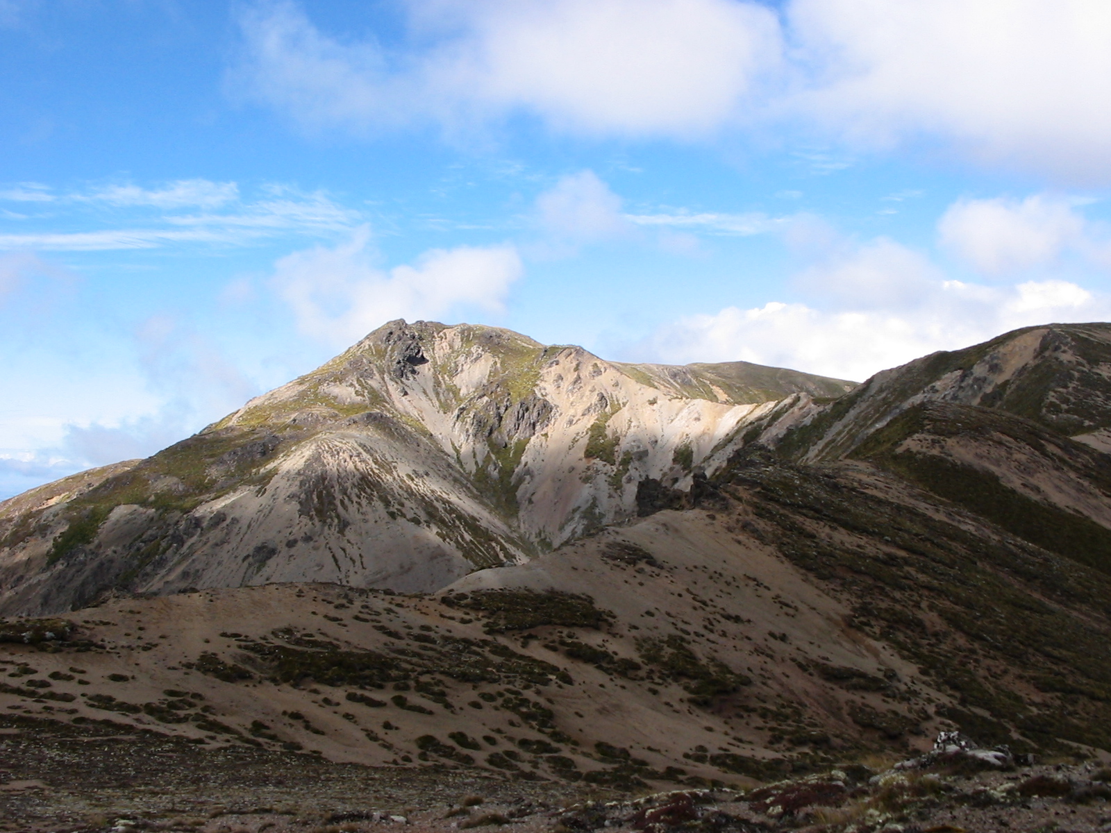 View of North Kaweka Peak from the ridge that would drop us down to the hotpools.