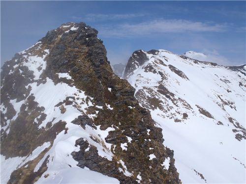 We turned around here. Not so much because of this bit, but due to it being late in the afternoon, slow progress, slippery snow and tussock and clag blowing in and out - didn't quite seem worth it!