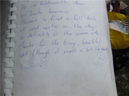 McGregor Biv hut book entry