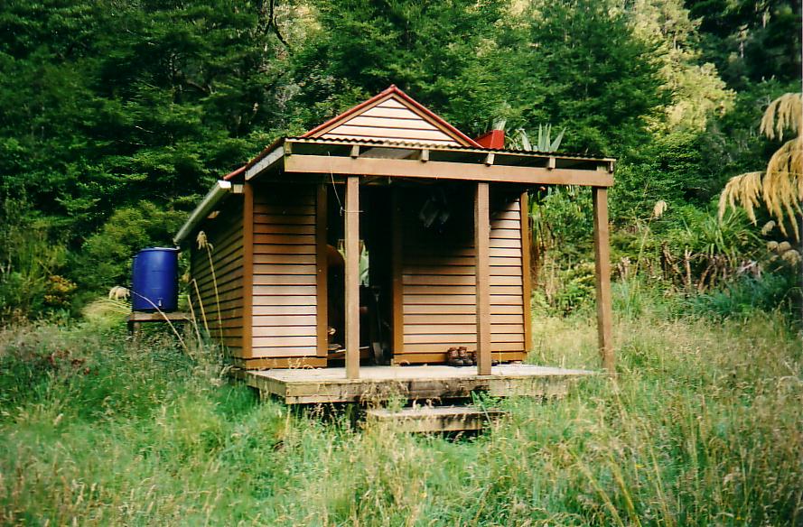 A superb hut in the Pohangina valley (north). The trip up river to Leon Kinvig is a great summer trip.