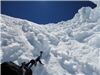 Me and Manoel descend to saddle from summit through ice gully