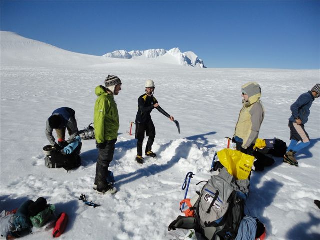Manoel begins construction work on our snow walls for the night