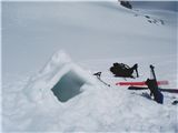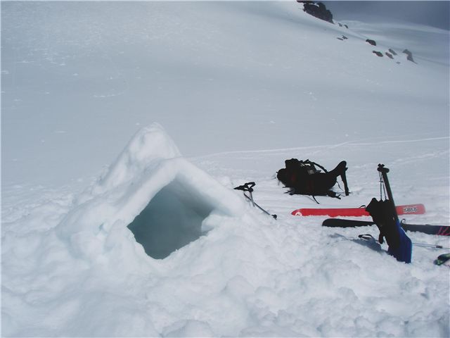 Just above knoll ridge, the snow was awesome in that you could cut blocks a metre square that would hold together and form excellent roofs and walls for our snow pit/cave!