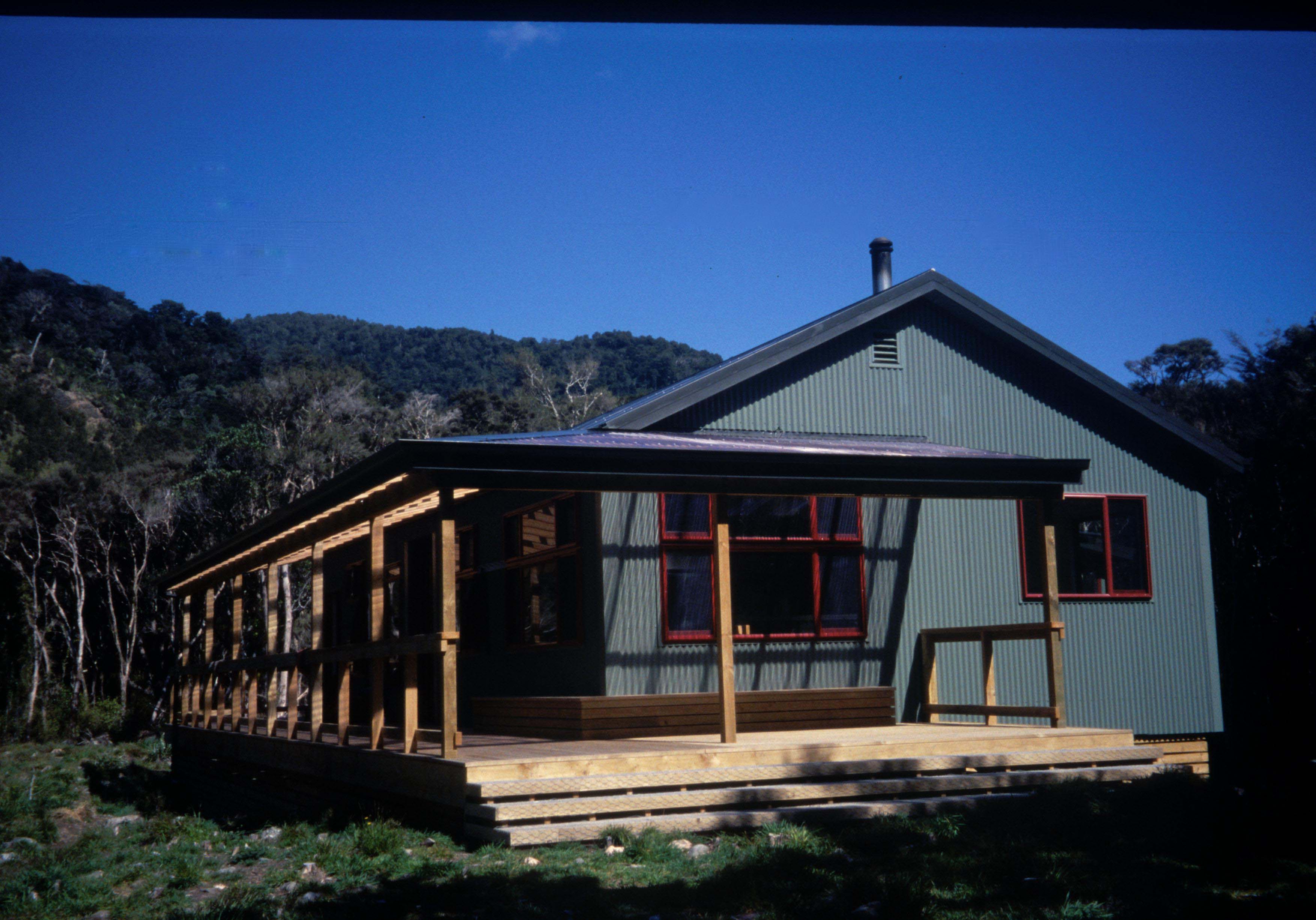 Photos of huts, bivs, and shelters in the Tararuas.