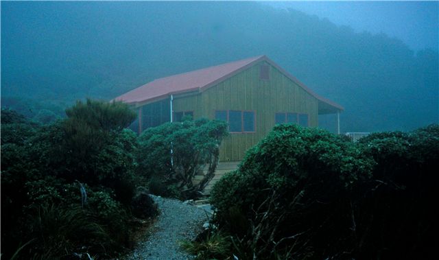 New Waiopehu built in 2002 is a comfortable modern facility, but with increased visitor numbers the track up Waiopehu Ridge has become very muddy. Located near the bushedge on Waiopehu.