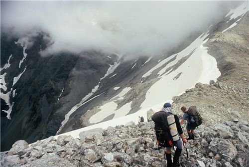 Andrew McCorrie and Hannah on the ridge between Axis and Harman
