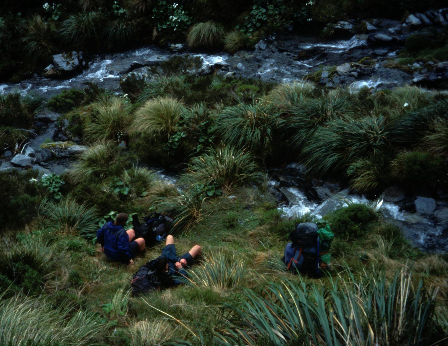 In the headwaters of Zit stream after a vigorous scrub tussle