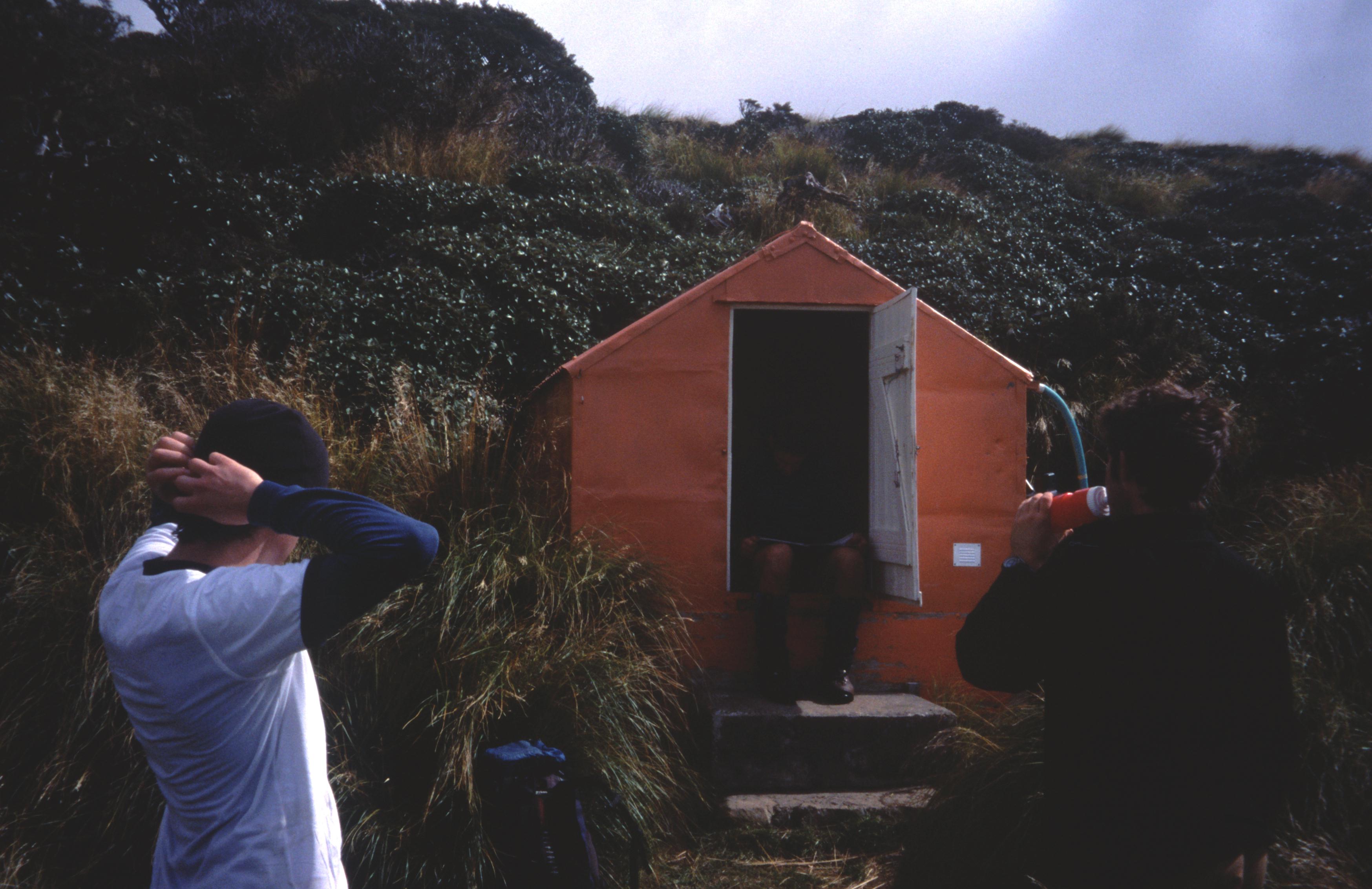 This biv nestles in a hollow in Black Ridge, not far from the bushedge. A feature here is the ''loo with a view''.