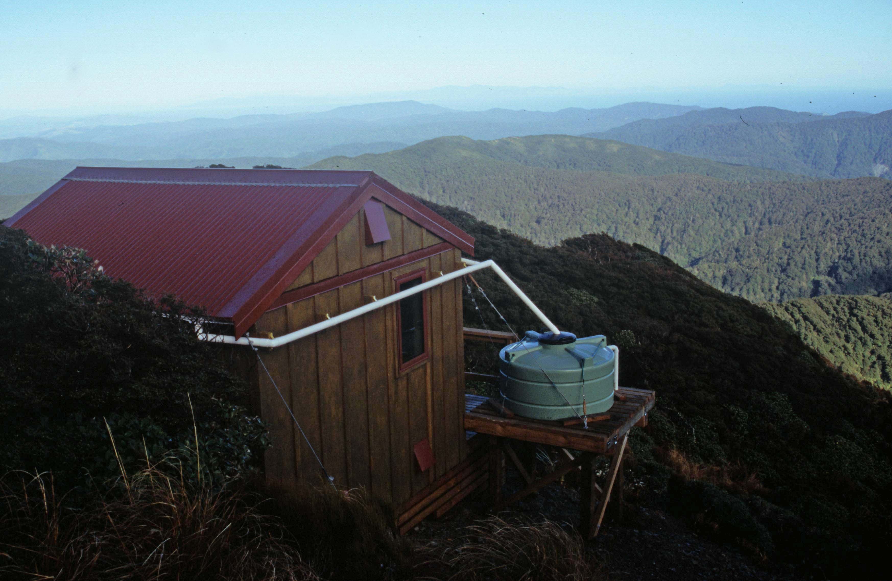 New Elder biv (really a small hut) has four bunks and great views right down to Wellington and the Kaikouras. It sits on Renata ridge between the Hutt and Waiotaru catchments.