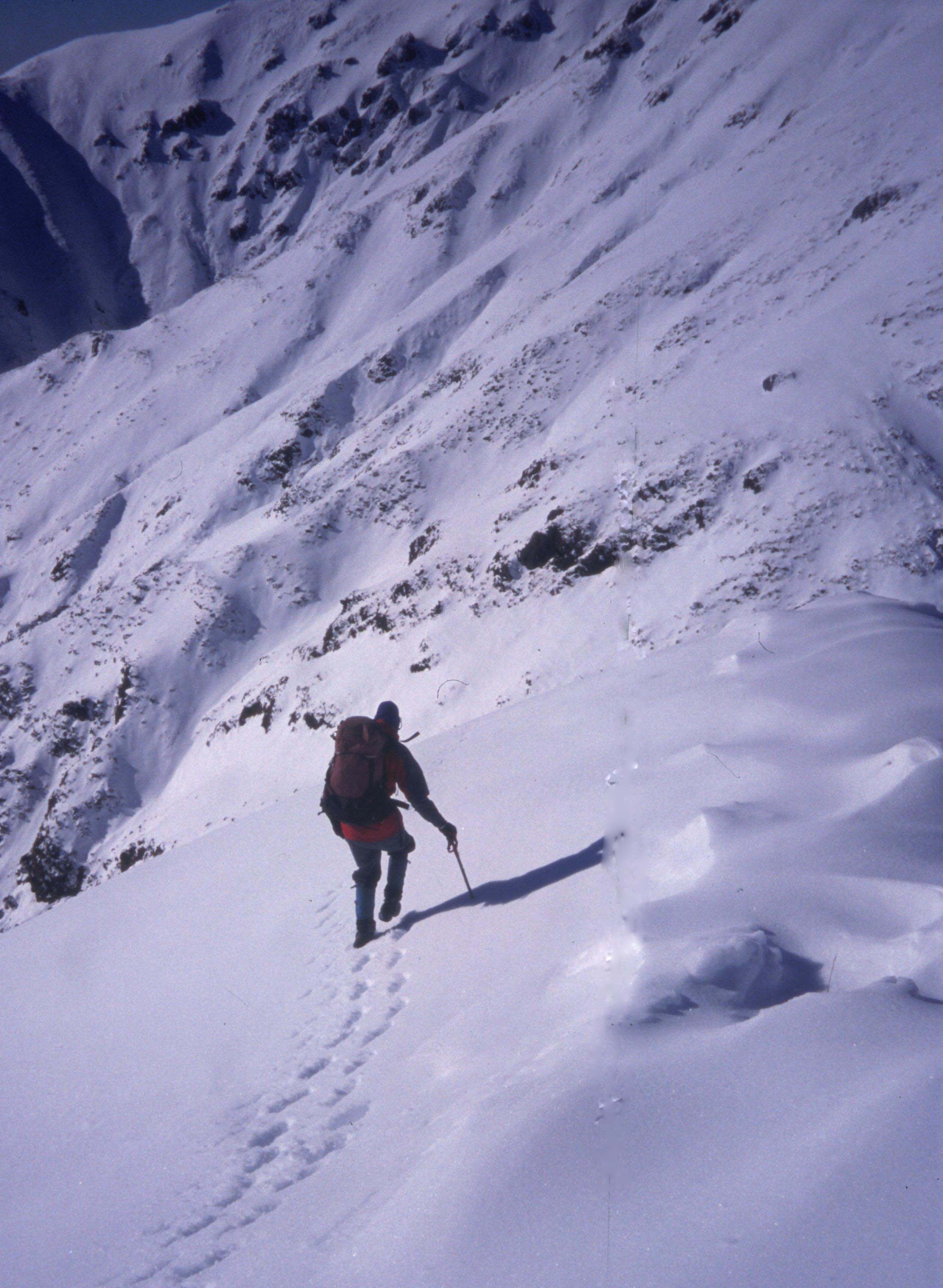 Crampons would have been nice as we grovelled down to Powell Hut on hard ice and in strong wind in winter 06.